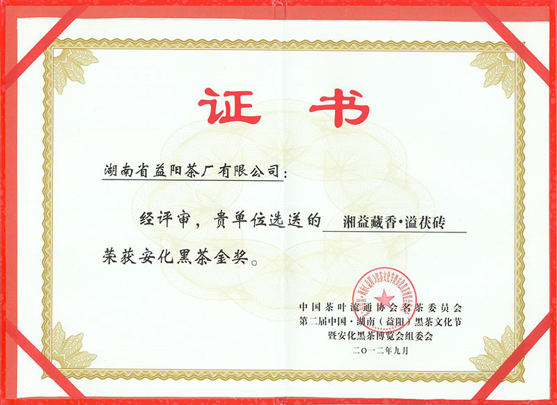 第二屆中國湖南黑茶文化節金獎(藏香·溢)