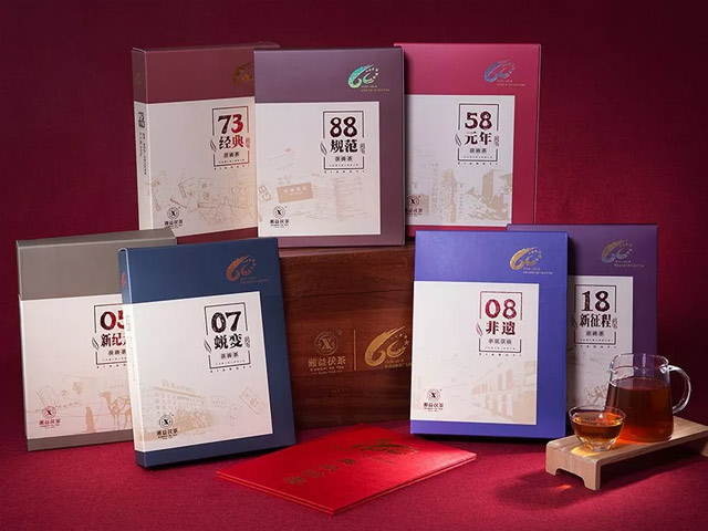 【歷程】禮盒內包含7盒茶磚及一冊茶廠(chǎng)發(fā)展廠(chǎng)史,分別是“58元年”、“73經(jīng)典”、“88規范”、“05新紀元”、“07蛻變”、“08非遺”、“18新征程”。每一盒茶磚都意義深遠,它們分別對應茶廠(chǎng)60年發(fā)展歷程中七大重要豐碑性事件,記錄著(zhù)茶廠(chǎng)60載歲月鎏金,見(jiàn)證著(zhù)茶廠(chǎng)的成長(cháng),留下了濃濃的歲月印記。