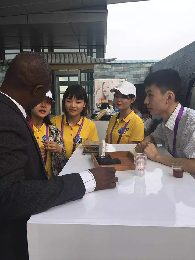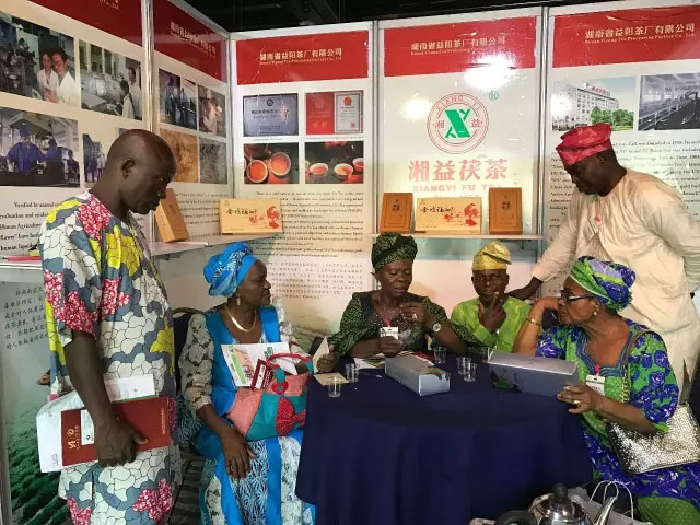 與會(huì )非洲友人品飲湘益茯茶并對湘益茯茶益生源頗感興趣
