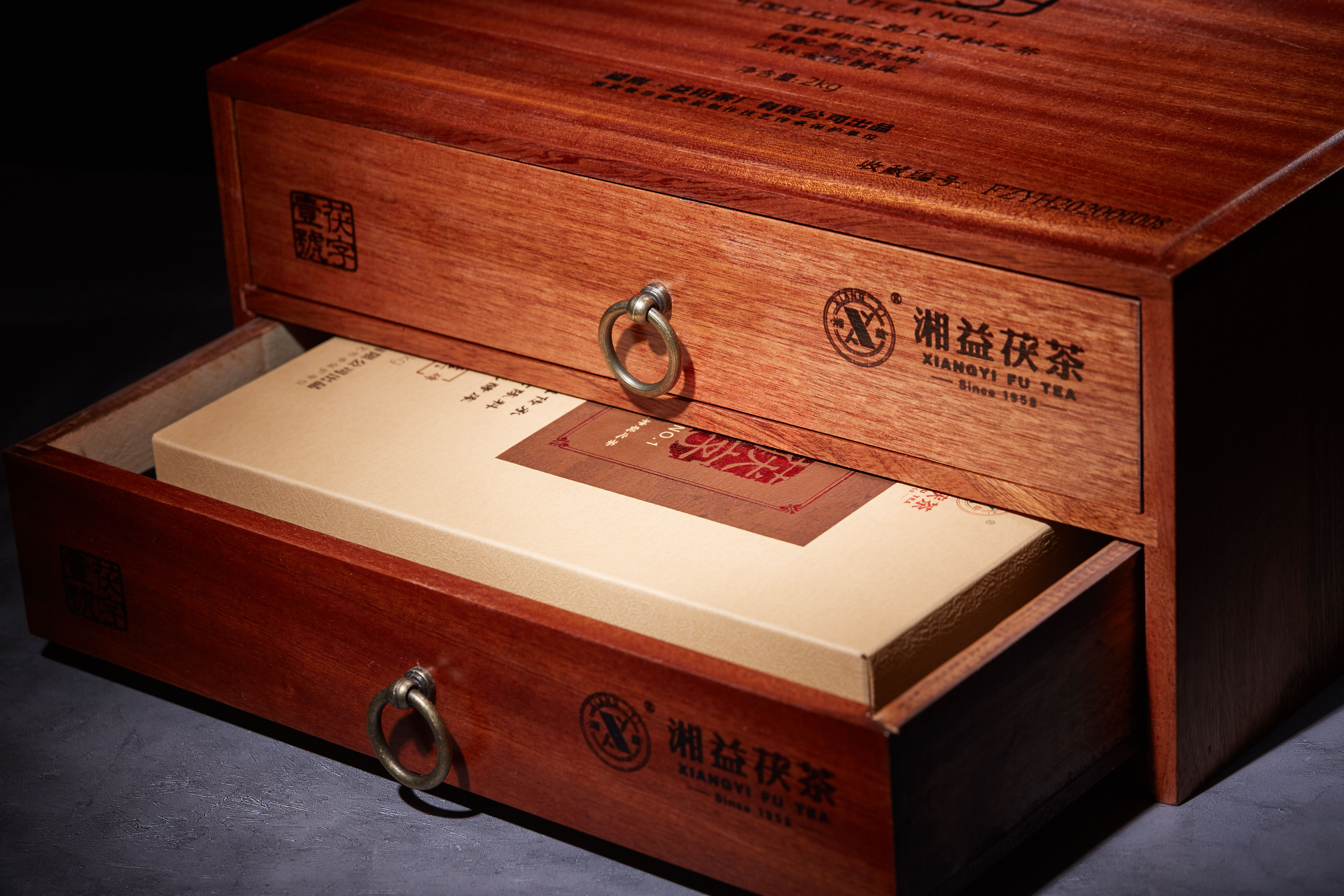 此外,包裝設計極富創(chuàng )意。特制進(jìn)口紅木,抽屜式拉盒設計,沉穩莊重。巧妙結合中國傳統刻字文化“陽(yáng)刻與陰刻”予以區分,既是產(chǎn)品包裝又可以疊加使用為茶葉儲藏柜,匠心獨運。每套均有獨立編號和典藏證書(shū),限量發(fā)售10000套,是一款有價(jià)有市的投資收藏尊品。