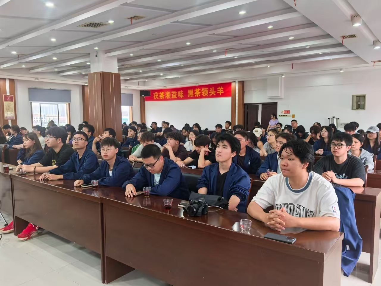 隨后的專(zhuān)題講座中,國家級非遺傳承人劉杏益大師結合近四十年實(shí)踐經(jīng)驗,深入解讀了茯茶“發(fā)花”核心工藝的科學(xué)原理與歷史價(jià)值,分享了標準化生產(chǎn)突破、健康功效研究等前沿成果。他強調,青年人才的參與和現代科技的賦能,是推動(dòng)茯茶技藝活態(tài)傳承、實(shí)現產(chǎn)業(yè)可持續發(fā)展的關(guān)鍵,并鼓勵同學(xué)們以創(chuàng )新思維為傳統行業(yè)注入新活力。